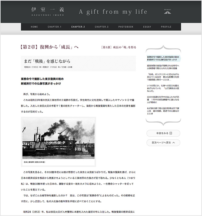 戦後ご自身で撮りためた多くのお写真や自筆のエッセイも掲載したサイトとなりました。